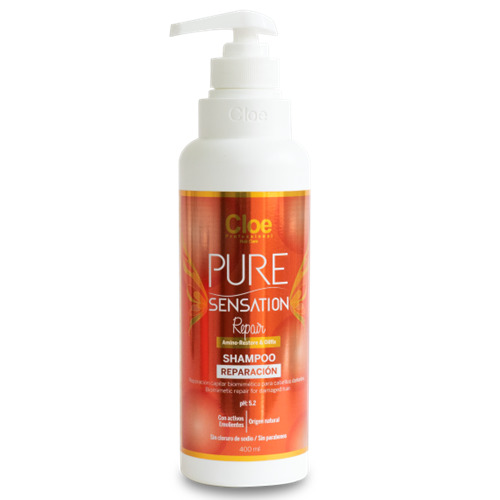 Shampoo Pure Sensation Repair, fortalece, repara y potencia el brillo del cabello dañado. Su fórmula libre de sal y con tecnología Glucosystem, entrega una limpieza suave con el cuero cabelludo y la hebra capilar. Contiene aminoácidos vegetales de bajo peso molecular que penetran hasta el cortex y reestructuran la hebra capilar. Apto para cabellos naturales o tinturados. Fórmula con gran contenido de aminoácidos de origen vegetal, sin parabenos, sin sal y no testeada en animales. Máxima restauración del cabello dañado. Mejora la resistencia capilar. Mejora la elasticidad. Devuelve la vitalidad y el brillo. Mejora la peinabilidad. Reduce estática y frizz.